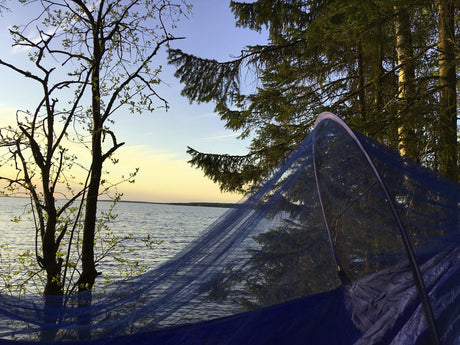 Retki riippumatto hyttysverkolla kotelomalli