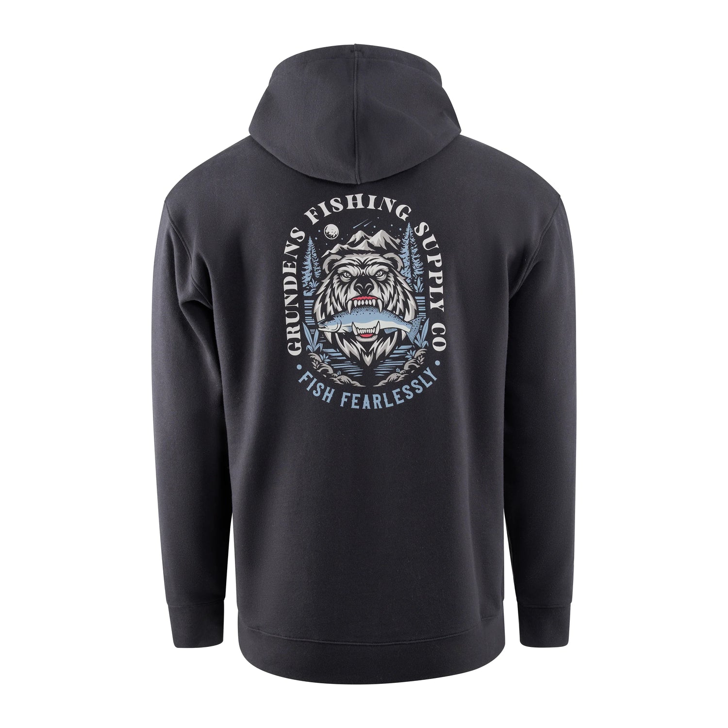 • Takana näyttävä Bear Essential -grafiikka – karhu, lohi ja motto “Fish Fearlessly”