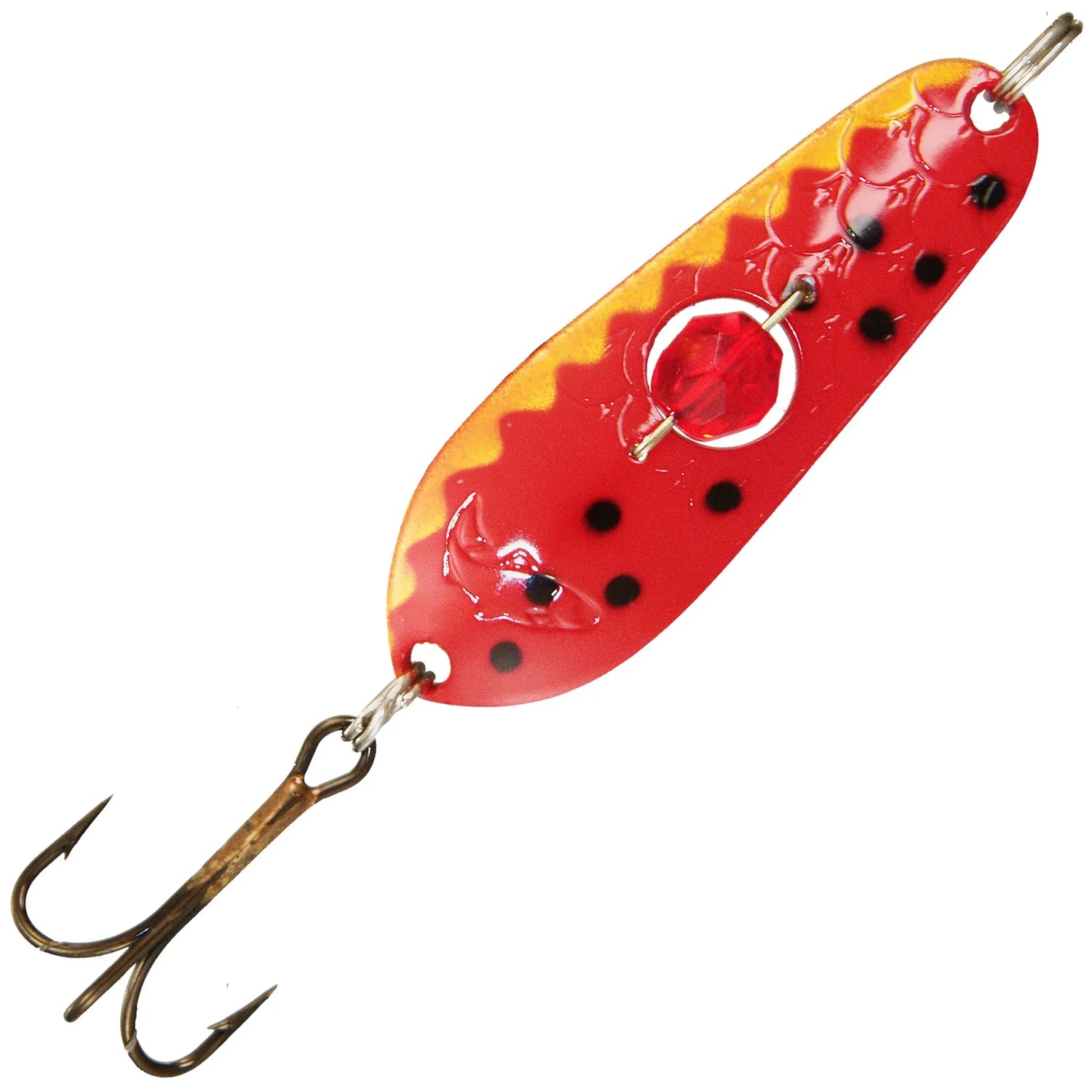 Kenties eniten kirjolohia saalistanut lusikka pilkinnässä? Laske pohjaan ja nosta aluksi noin 20 cm pohjasta. Nosta pitkiä nopeita vetoja kerta pari. Odottele, värisytä ja taas odottele. Nykäise aina silloin tällöin pidempiä nykäisyjä houkutellaksesi kauempana olevat kalat avantosi alle. Tarjoa myös heittäen kirjolohelle, taimenelle, harjukselle, raudulle ja siialle. Koskikalastajan luottopelejä!