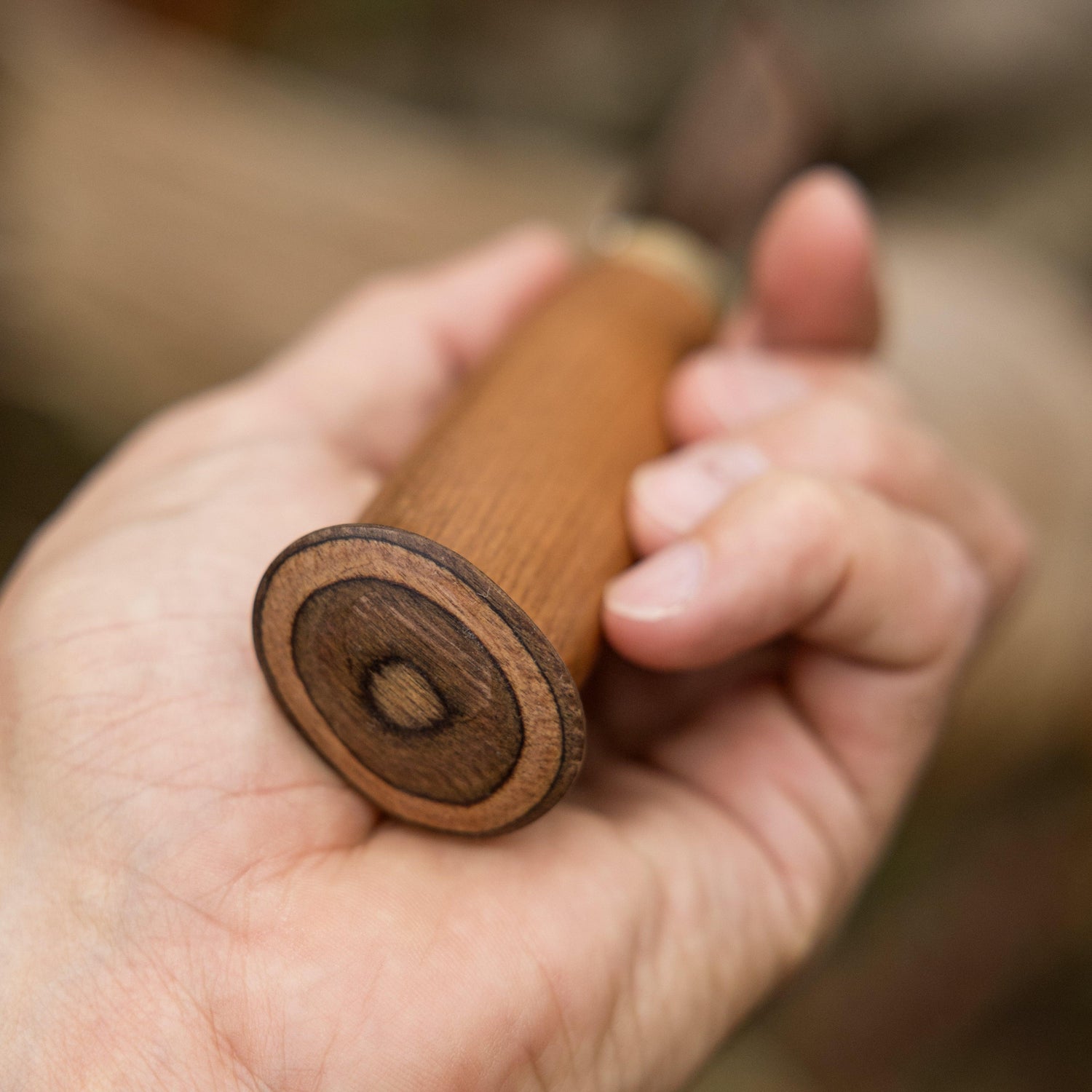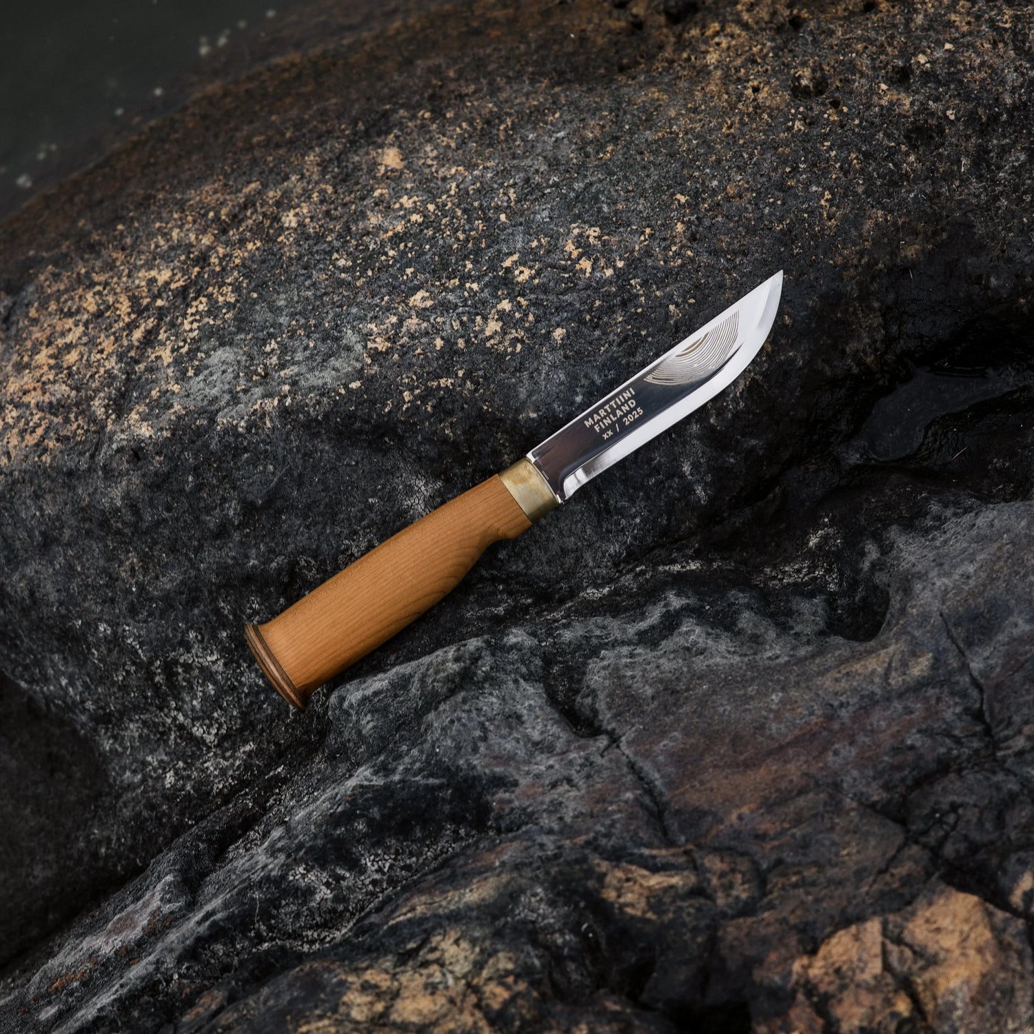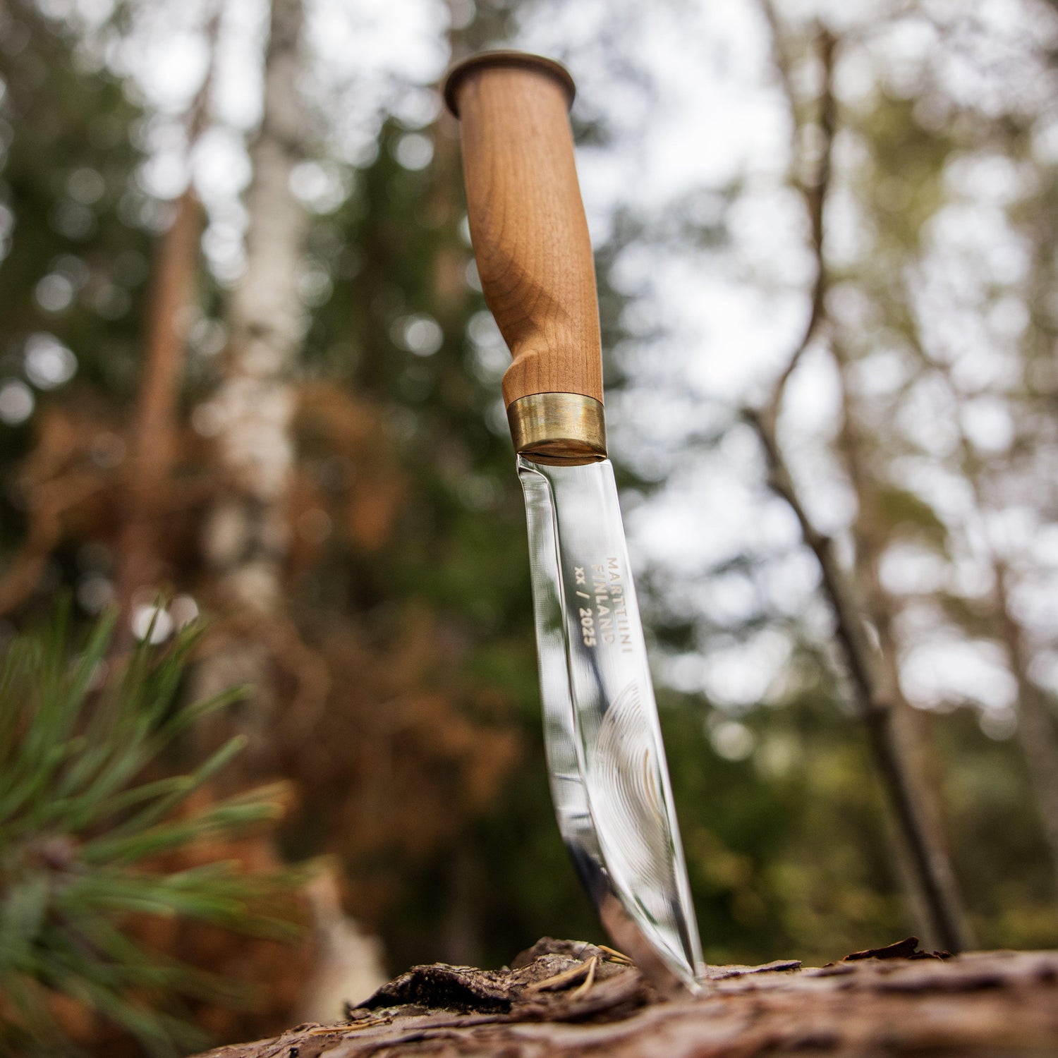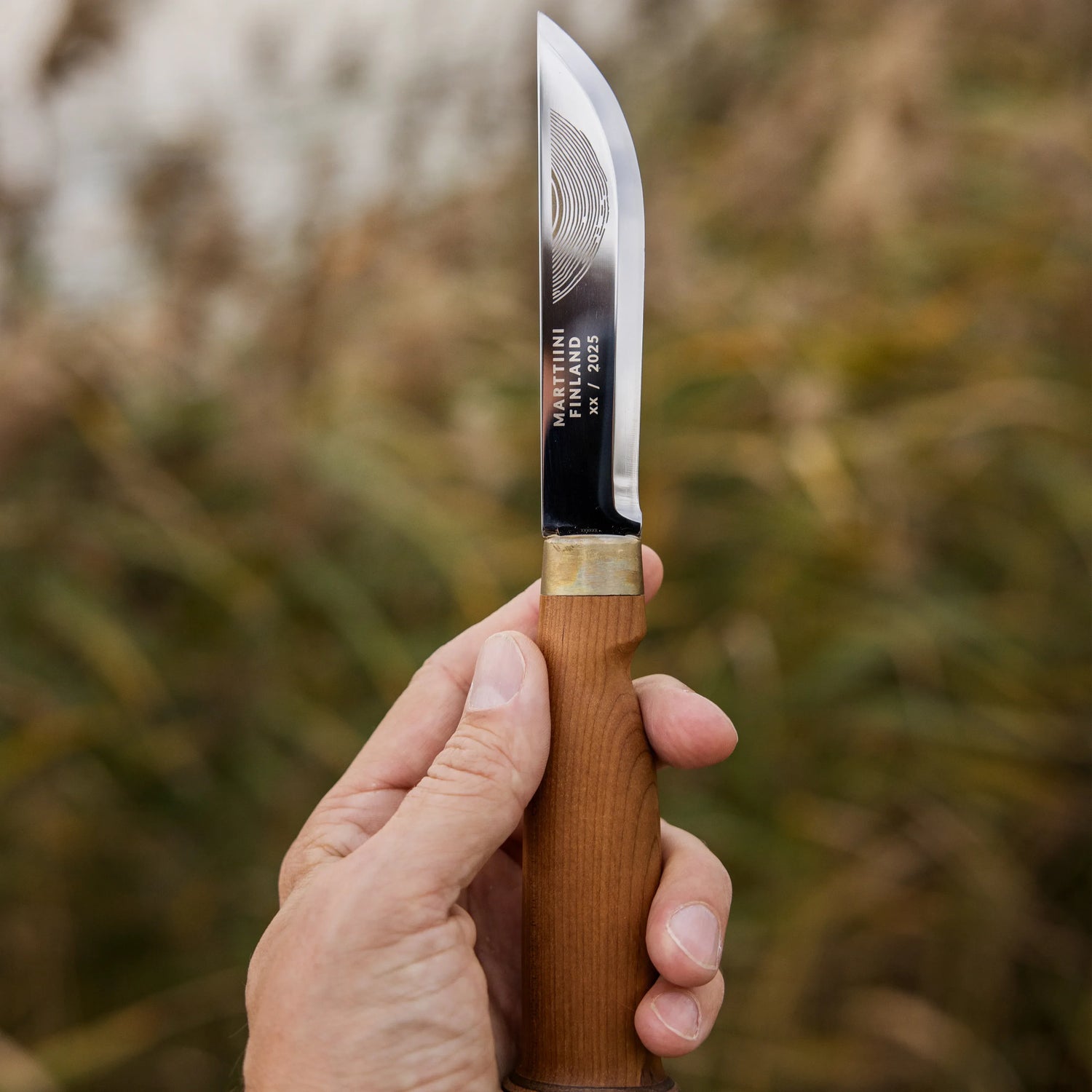 • Uniikki muotoilu: Vuosirenkaat toistuvat puukon ja tupen kuvioinneissa, ja jokaisen kahvan vaneripääty on yksilöllinen, tehden jokaisesta puukosta ainutlaatuisen.