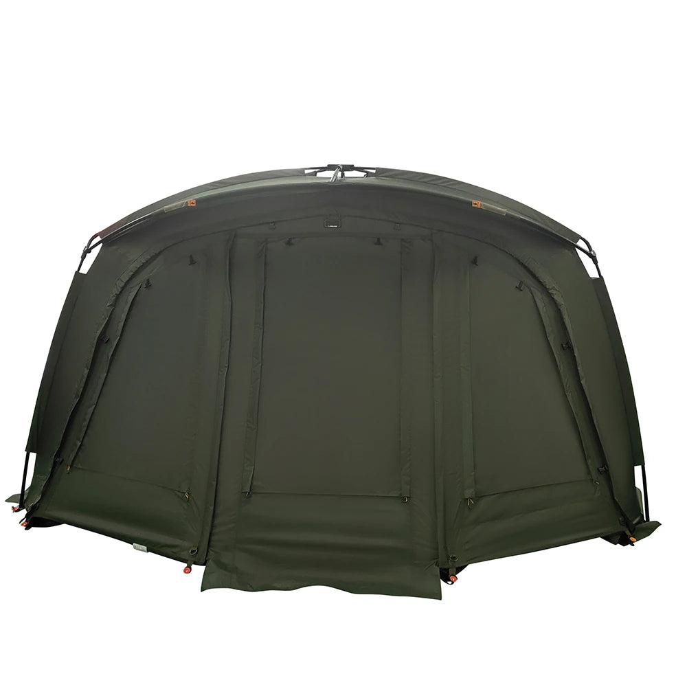 Pohja on varustettu painavalla Pro-Tect-pressulla, joka kiinnittyy vetoketjulla noin 10 cm maasta. Tämä rakenne estää sadeveden pääsyn sisälle ja pitää myös ötökät ulkopuolella. Näin yöt sujuvat rauhassa ilman häiriöitä.
